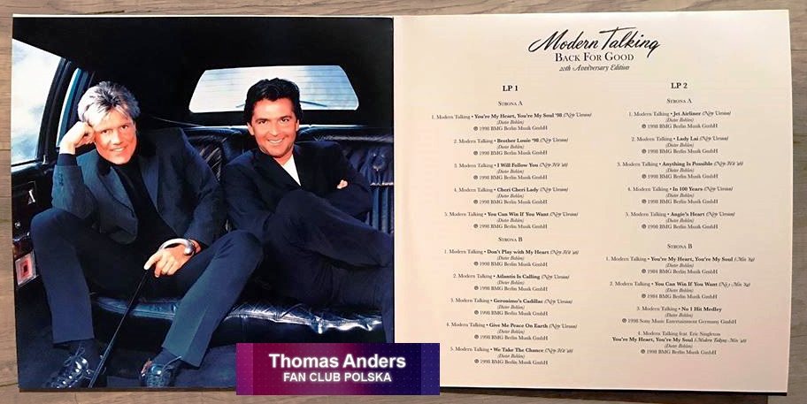 W powietrzu był niewyczuwalny niepokój. Wiedzieliśmy, że to był nowy początek dla Modern Talking. Jednak nie wiedzieliśmy, że to będzie początek jednego z największych powrotów w historii muzyki. Ciągle jeszcze dokładnie pamiętam, jak powstawała legendarna okładka „Back for Good”. Pomysł był taki, że Dieter miał być ubrany cały na czarno a ja na biało. Staliśmy do siebie plecami, z głowami obróconymi bokiem ku sobie i uśmiechaliśmy się. Kosztowało mnie to wtedy wiele wysiłku, tak pozować dla fotografów. Nawiązałem bliski kontakt, skóra przy skórze, czując jego oddech, z człowiekiem, który jeszcze kilka lat wcześniej zrobiłby wszystko, żebym zawodowo nie stanął na nogi. Byłem niepewny. Czyżby Dieter tak się zmienił? Czyżby czas uczynił go dalekowzrocznym i wielkodusznym? Sesja fotograficzna przebiegła harmonijnie i spokojnie, a Peter Angemeer zastanawiał się, dlaczego właściwie musiał tu być. Następne tygodnie były wypełnione terminami. W studiu nagrałem jeszcze cztery nowe utwory na nasz album, poza tym musieliśmy jeszcze nakręcić video. Byliśmy wspierani przez Erica Singletona. On napisał i zaśpiewał rapowane wstawki do „You're My Heart, You're My Soul” i kolejnych singli. Mieliśmy rozmowy z naszym koncertowym promotorem w związku z zaplanowaną trasą po Niemczech i spotkania z wytwórnią płytową w sprawie kolejnych działalności promocyjnych. Wytwórnia płytowa sporządziła dla nas zmyślny plan marketingowy, który w końcu miał doprowadzić do sukcesu.