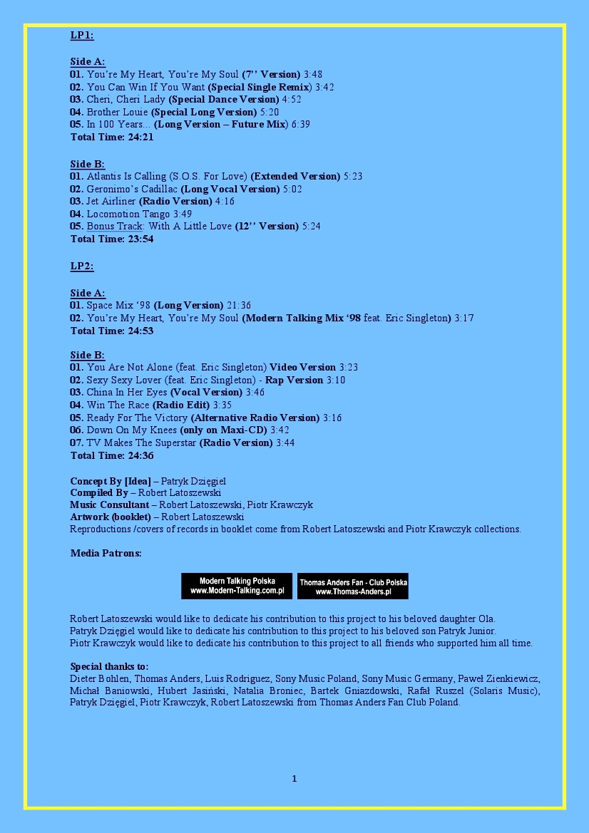 To była II faza Modern Talking, która wykazywała już pierwsze oznaki tego, że Dieter znów stawał się kapryśny.