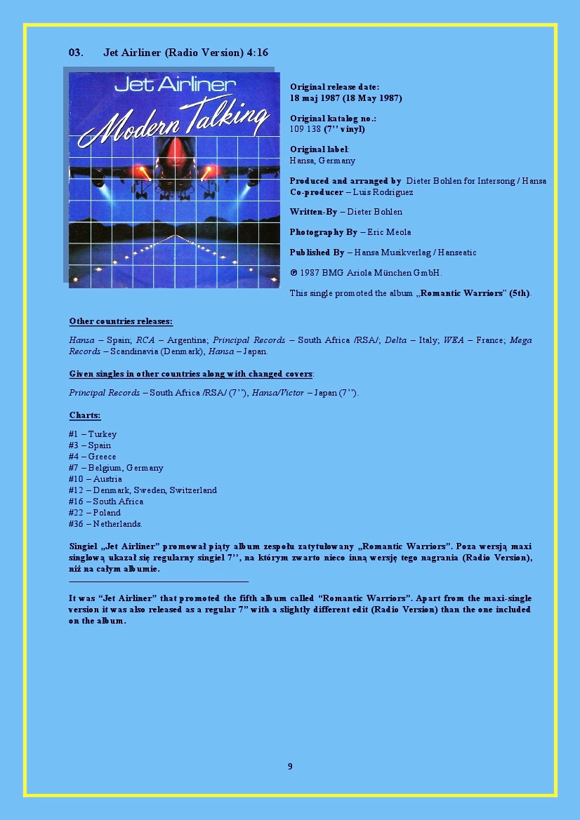 Nasz album „Romantic Warriors” i singiel „Jet Airliner” ukazały się w Niemczech i weszły na trzecie miejsce czy inaczej do pierwszej siódemki listy przebojów. Modern Talking wciąż odnosiło sukces.
