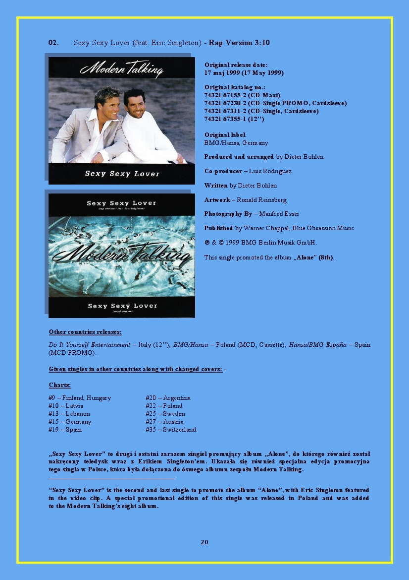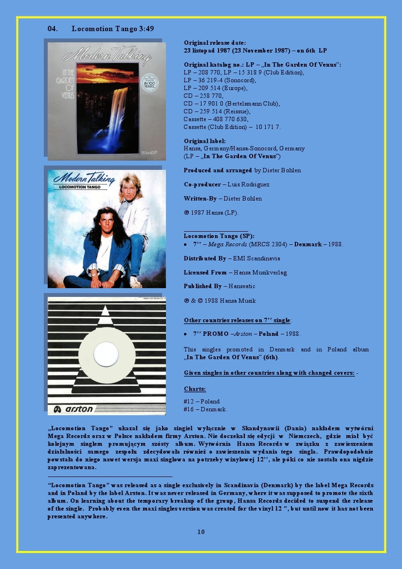 Życie mijało nam w przyśpieszonym tempie. Każdego dnia były nowe informacje o sukcesie. W ciągu kilku tygodni na świecie sprzedało się więcej niż dwa miliony singli „You're My Heart, You're My Soul”, album był na 1 miejscu w dziesięciu krajach. Drugi singiel również był już na piątym miejscu list przebojów w całej Europie. Wchodził do Azji i do Afryki Południowej też. Czasami byliśmy w trzech krajach jednego dnia. Rano Oslo, po południu Amsterdam, wieczorem Paryż. I tak bez przerwy... Fryderyk Gabowicz, fotograf czasopisma Bravo, rejestrował wszystko kamerą. Meldowanie w hotelu, jazdę do stacji telewizyjnych, radiowych, redakcji magazynów, występy w klubach i dyskotekach, kupowanie pamiątek, scenki w pokoju hotelowym. Padałem na łóżko o trzeciej w nocy potwornie zmęczony, a rano o siódmej już znowu pobudka, żeby nie spóźnić się na lot do Madrytu. Czekała nas praca nad nowym albumem. Wytwórnia płytowa i Dieter też chcieli jesienią wprowadzić na rynek nowy album. Na zasadzie, trzeba kuć żelazo, póki gorące. A więc nagraliśmy nasz drugi album „Let's Talk About Love”.