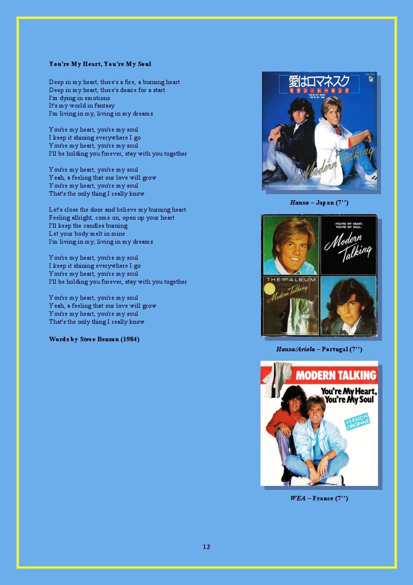 Wytwórnia płytowa nie była pewna, czy rzeczywiście osiągniemy z „You're My Hert, You're My Soul” duży sukces i chciała poczekać z castingiem na partnera. Dieter i ja w tym momencie również nawet o tym nie marzyliśmy, że kilka tygodni później „You're My Hert, You're My Soul” będzie światowym hitem a my ze sprzedanymi ponad 120 milionami płyt staniemy się w Niemczech najpopularniejszym duetem wszech czasów.