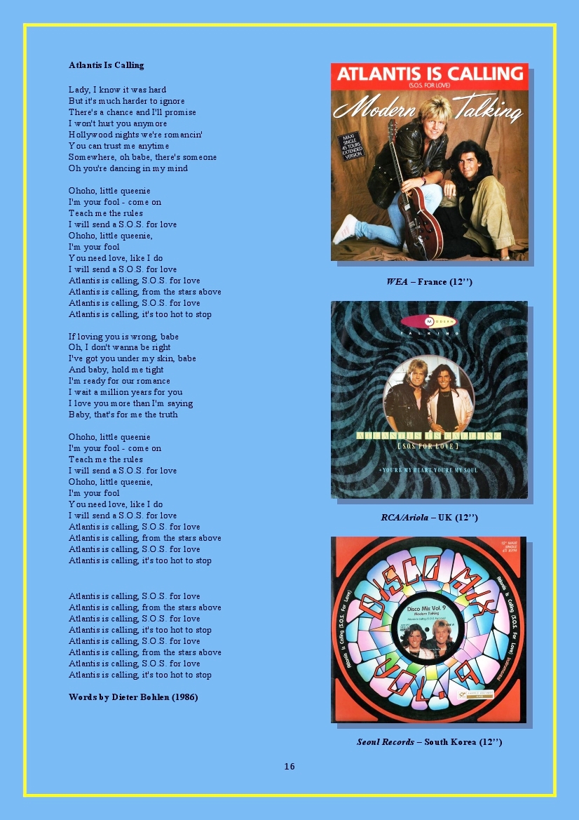 Kiedy został wydany piąty singiel Modern Talking „Atlantis is Calling”, również poszedł jak rakieta od razu na pierwsze miejsce! Poza tym JA ciągle było MY! Dieter i Thomas. Widywaliśmy się jeszcze tylko podczas obowiązkowych terminów. Promocji w kraju i za granicą. Uważałem sytuację z Dieterem za nieznośną.